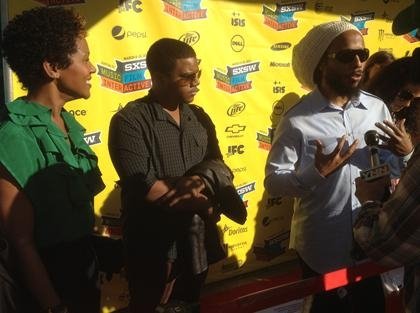 From right, Ziggy Marley and son Nesta, with Karen Marley, daughter of the late Bob Marley at red carpet event for the documentary 'Marley' in Austin, Texas, during South By Southwest .