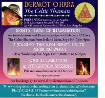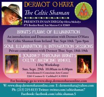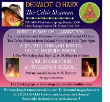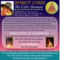As I mentioned in my recent Newsletter, I am hosting the Celtic Shaman, Dermot O'Hara for his Fall visit to Southern California. I get so excited when it comes to sharing his gifts with others. Unlike so many in this New Age Crazed World, Dermot is the "Real Deal"- a powerful shaman, pure hearted and a straight shooter. If you think you may be ready to take quantum leaps in clearing out the past and moving forward with a lilt in your step and a smile in your heart - then I encourage you to take advantage of his offerings while he's visiting from Ireland.He'll be presenting in L.A., Costa Mesa, San Marcos, San Diego, and La Mesa. He'll be holding workshops in L.A., Carlsbad and La Mesa. His Fire and Drum Circle will be in Vista. Details below. You're going to love this man and his many gifts!!