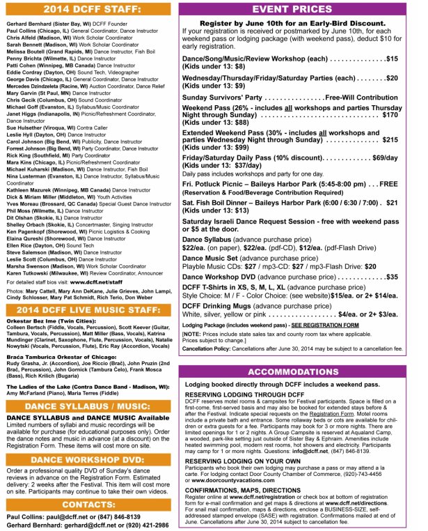 Moving on, Penny and I will once again be presenting Israeli dance workshops at the annual Door County Folk Festival which takes place from July 9-13 in beautiful, you guessed it, Door County. The area is a wonderful vacation/getaway location. And you can opt in or out of as much dancing as you'd like. Check it out. See the brochure below.
