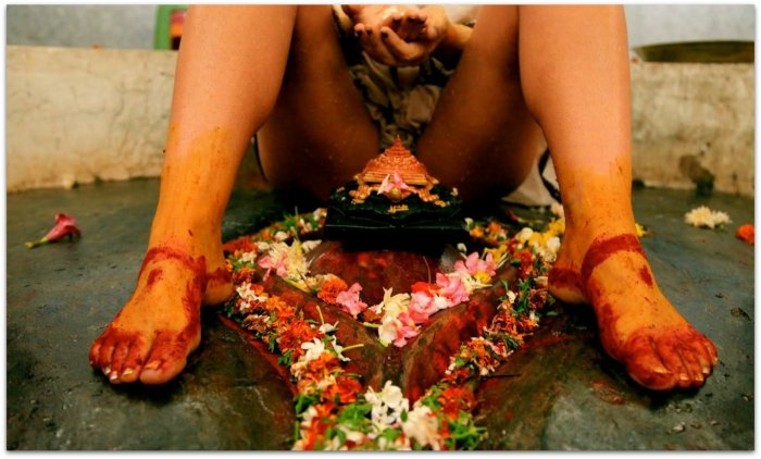 Did you know that Shiva's emblem is Ananda Bhairava, the unhooded penis Linga, that my temple is the life giving womb Garbha, that Ganapathi stands at the G-spot, that Kundalini- Kumara's seat is the clitoris, and that the vehicle of Shiva is the testes? Did you know that flowers are the genitals of trees, holy ashes represents semen and kumkum the menstrual flow?