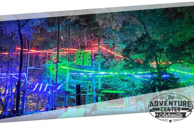Celebrate the Summer with family and friends. Imagine climbing 40 feet in the air and zipping along a hang glider or a sky kayak in the largest adventure park in Western North Carolina. Then, as the sun starts to set, the challenges become illuminated with over 15,000 colored twinkle and laser lights. Five of the Adventure Park’s aerial trails become illuminated with all their leaves, cables, ropes and platforms.
