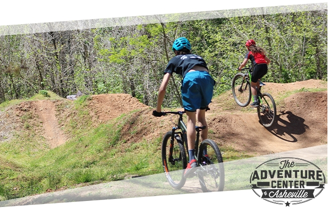Check out our mountain bike sampler pack right in Asheville with purpose-built bike trails, skills area, pump tracks, jump line, rock garden, Littleville and loads of berms, tabletops, skinnies, etc!