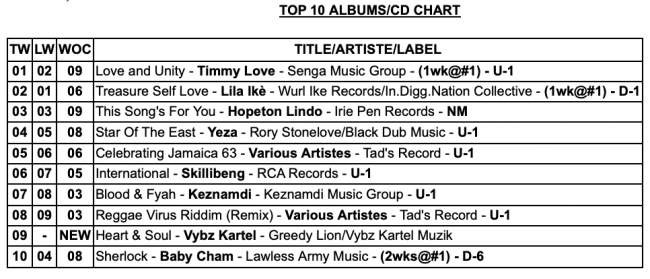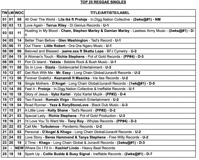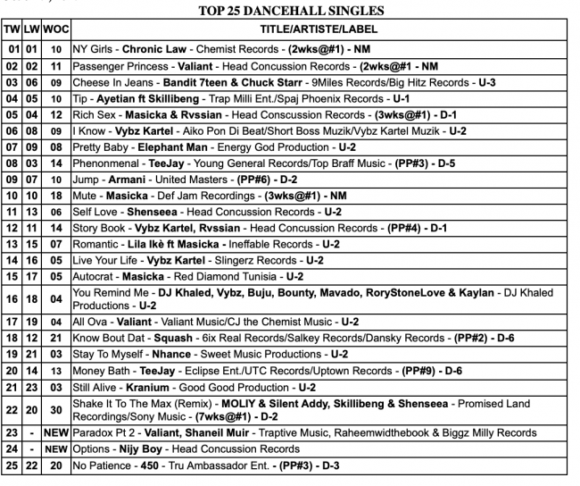 TOP 25 Dancehall Singles,TOP 25 Reggae Singles, and TOP 10 Albums/CD Chart