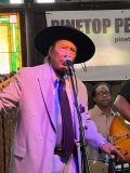 As you can see from the pictures here, Liz enjoys meeting and working with the artists. She says it's a great honor to get to know them, and develop those warm friendships. Christone "Kingfish" Ingram is a "graduate" of the Pinetop Perkins Foundation Youth Workshops held every summer in Clarksdale, MS. Whenever he can each year, he drops in quietly at the Homecoming and jams with the other young workshop attendees. It's an exciting and heartwarming moment. Here is some video of the Pinetoppers jamming.
