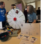 Visitors spun our “Wheel of Questions,” landing on prompts such as “What is the difference between clog dancing and tap dancing?” or “Do you wear wooden shoes?” The latter question answered immediately by performance group Puget Sound Rhythm, who gave a lively clog dancing demonstration in the entryway. Several people asked if we were exhausted, just the opposite, adrenaline at its peak, it was pure joy! What a wonderful day!!!