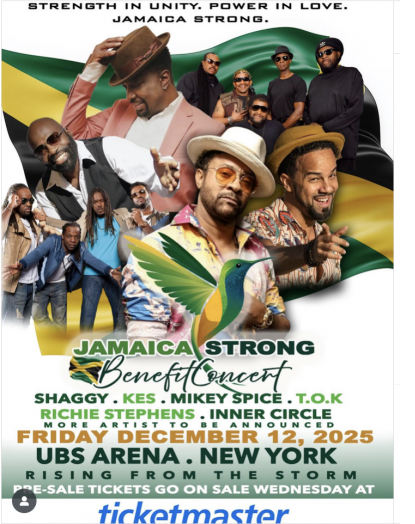 “This is more than a concert — it’s a movement,” organizer George Crooks said in a statement. “Every ticket purchased directly supports rebuilding lives, homes, and hope in Jamaica.”