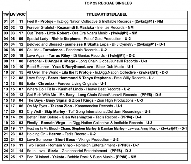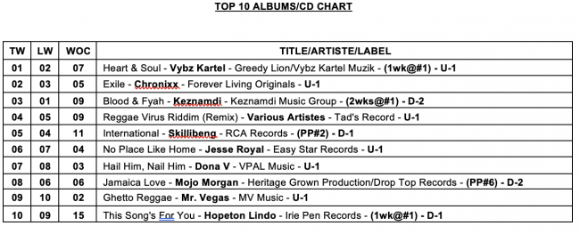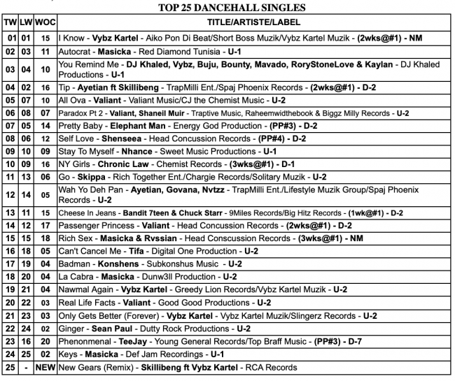 TOP 25 Dancehall Singles,TOP 25 Reggae Singles, and TOP 10 Albums/CD Chart