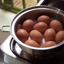 Hard Cooked Eggs 5 whole eggs 2 tbsp water Directions - Hard Cooked Eggs Fill pan with 5 eggs. Add 2 tablespoons of water to the pan, and cover. Place on burner and set temperature to medium. When Vapo-Valve™ begins to click, turn temperature to low setting. After Vapo-Valve has activated cook eggs for 5 - 6 for medium cooked center and 7 – 9 minutes for hard cooked center. Cooking time may vary with stove. By adding a little water to the pan helps the Vapo-Valve to activate when the inside cooking temperature reaches approximately 180 degrees, and signals it’s time to turn the temperature to low setting for the remaining cooking time. Note: All stoves vary in cooking temperatures, so finding the right temperature setting on your stove will make a difference in how easy eggs are to cook and the utensil is to clean.