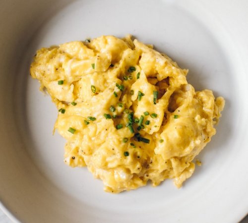 Scrambled Eggs 2 whole eggs 2 tbsp water Directions Scrambled Eggs: Preheat skillet for 3 minutes over medium-low heat (approximately 250°). Add a little butter or spray oil in the heated skillet. Immediately break desired number of eggs open in the bowl. Add water and whisk together until thoroughly blended. Pour egg mixture in the skillet. Using the edge of the turner, push the eggs around in the skillet and cook approximately 3 minutes until there is no liquid remaining, or to desired texture. Note: Adding water to the eggs prior to cooking make the eggs fluffy and light. Cooking time may vary depending on the number of eggs cooking. All stoves vary in cooking, so finding the right temperature setting on your stove will make a difference in how easy eggs are to cook and the utensil is to clean.