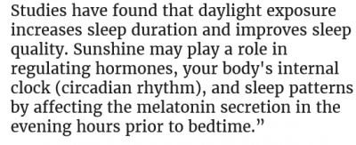 Getting exposure to sunlight in the morning can help you sleep at night because it helps reset your body's inner "sleep clock."