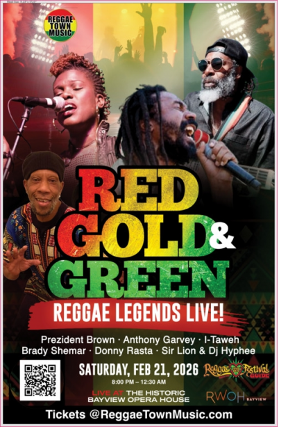 The stage will feature dynamic performances by:• Prezident Brown — veteran roots reggae voice with a message of uplift and empowerment