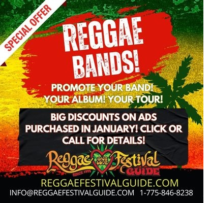 We also offer Publicity & Graphic Services for bands and festivals: band bios and interview written, social media management, website consulting design and maintenance, EPKs created, graphics for advertising and social media branded videos, and more. Please contact us to find out how we can help you with your exciting projects. One Love from our reggae-loving family to you, Kaati, Joana, Irene, Michele, and Melisa Information - both editorial and advertising - in the Reggae Festival Guide - is believed to be correct but not guaranteed - so check it carefully before you attend any event or send money for anything. We do not write the news, just report it.