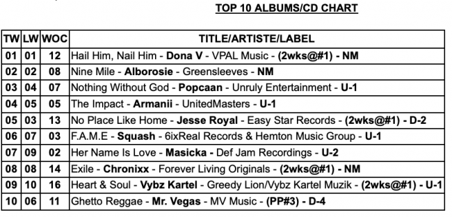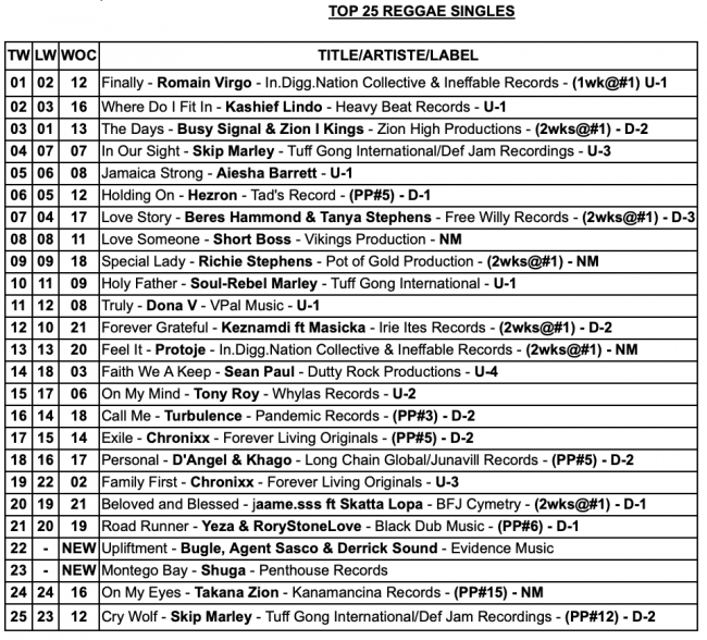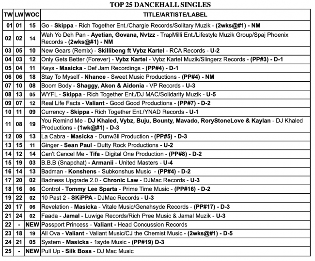 TOP 25 Dancehall Singles,TOP 25 Reggae Singles, and TOP 10 Albums/CD Chart