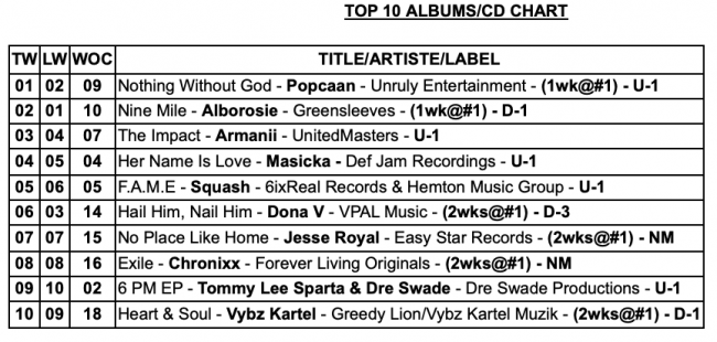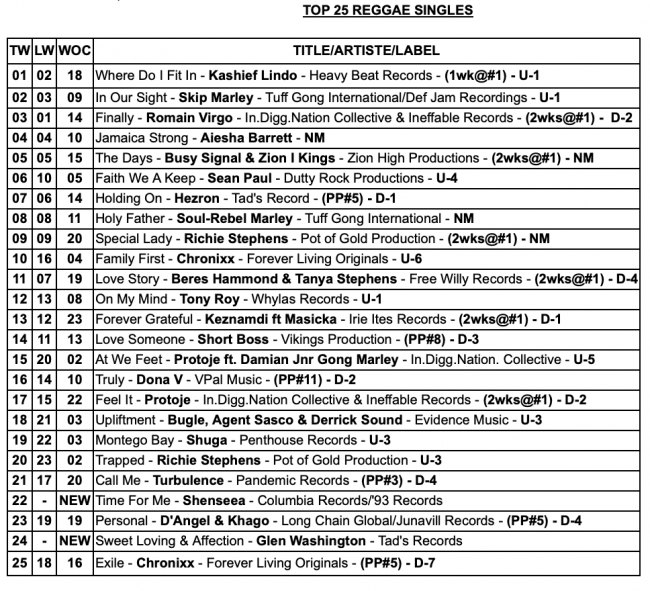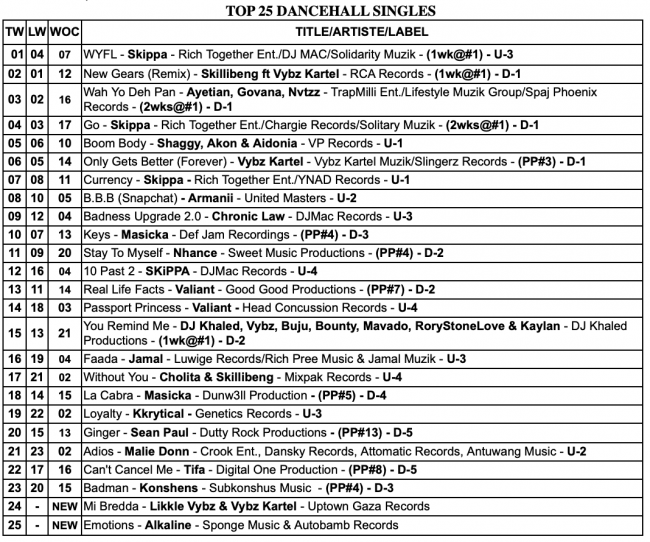 TOP 25 Dancehall Singles,TOP 25 Reggae Singles, and TOP 10 Albums/CD Chart