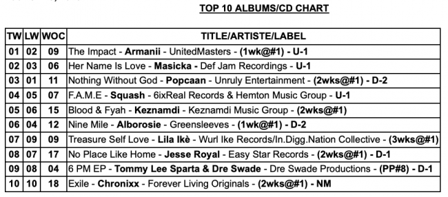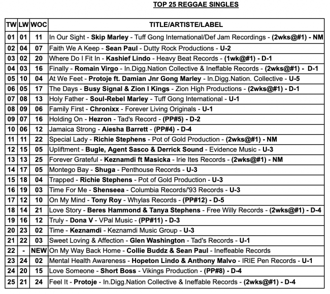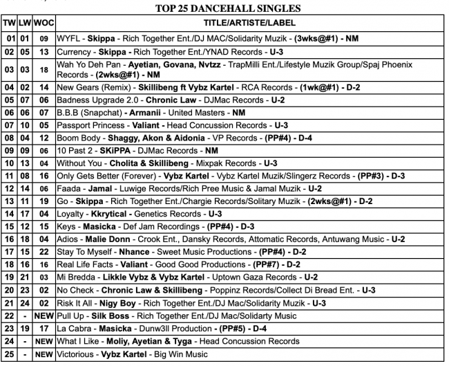 TOP 25 Dancehall Singles,TOP 25 Reggae Singles, and TOP 10 Albums/CD Chart