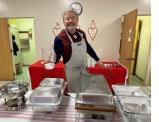 The kitchen hummed with activity: boiling pastas, tossing salads, plating desserts, setting out the bounty. Lasagnas, rich meat sauce, Beecher's Mac & Cheese and Eggplant Parmesan arrived hot ready to eat. The tables were set with festive flowers, valentines and bubbly Pellegrino. What a feast!