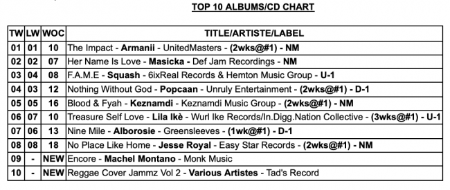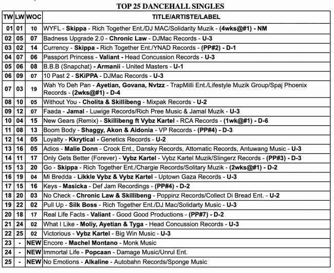 TOP 25 Dancehall Singles,TOP 25 Reggae Singles, and TOP 10 Albums/CD Chart