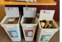 Church meals and gatherings now rely on reusable silverware or compostable utensils, and all paper products used for food sharing are fully compostable. In the church parlor, three clearly marked and distinctive bins — compost, recycling, and garbage — help ensure that waste is sorted responsibly. These simple but intentional changes help incorporate sustainability into our weekly rhythm as a community.